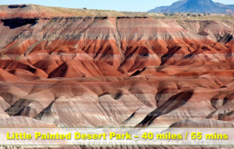 But there’s more than wood to the Petrified Forest’s history. You can see remnants of more than 13,000 years of human history at the park, including Puerco Pueblo – a nearly 800-year-old, 100-room dwelling, a diverse, extensive collection of prehistoric pottery fossils and even a protected section of historic Route 66.