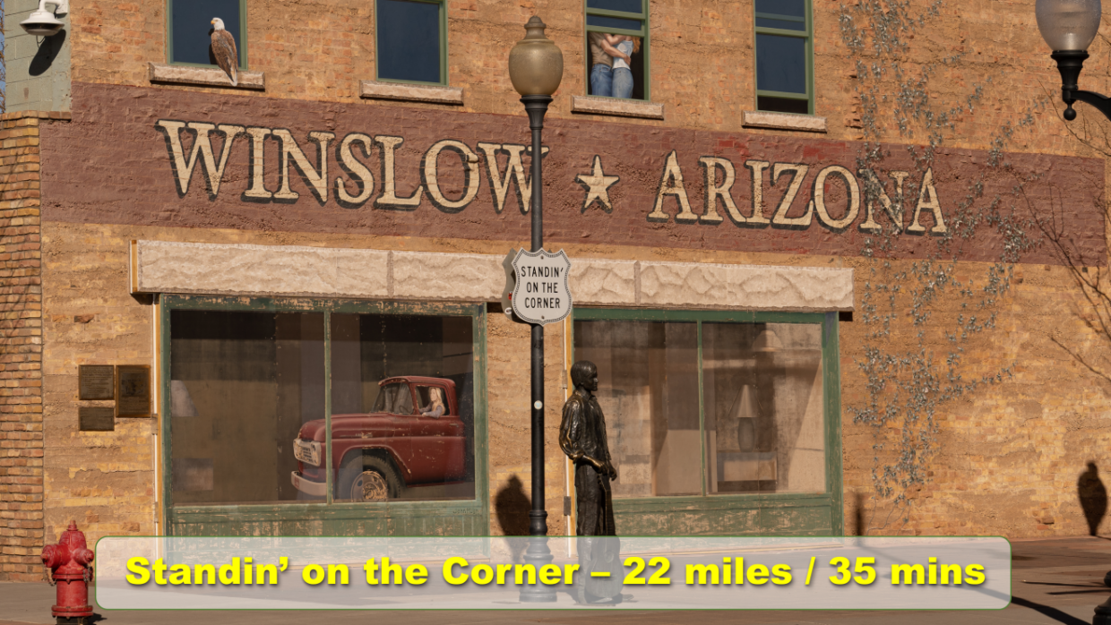 Whistling a tune known the world over is what you do when you’re at Winslow’s Standin’ On a Corner Park, which capitalizes on the song’s multi-decade fame. In the same block, you’ll find the Old Trails Museum which houses memorabilia – much of it donated by citizens – that tells the history of a town shaped by American Indians and Western pioneers.