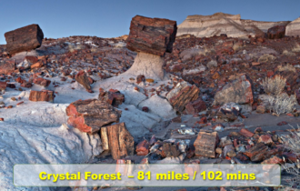 But there’s more than wood to the Petrified Forest’s history. You can see remnants of more than 13,000 years of human history at the park, including Puerco Pueblo – a nearly 800-year-old, 100-room dwelling, a diverse, extensive collection of prehistoric pottery fossils and even a protected section of historic Route 66.