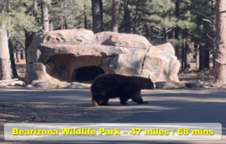 Bearizona is a drive through Wildlife Park nestled amongst the pristine Ponderosa Pine forests of Northern Arizona. Bearizona offers visitors to Northern Arizona a new and exciting way to enjoy wildlife the way it was meant to be, in a natural environment. Bearizona Wildlife Park is the only park of its kind in the southwest. Bearizona is located at the gateway to the Grand Canyon in historic Williams, Arizona, just one hour from Grand Canyon’s south rim, three hours southeast of Las Vegas, and two and a half hours northwest of Phoenix. Bearizona is located off of Interstate 40, at exit 165 and is a convenient stop for visitors wanting to experience the Grand Canyon and the beauty of Northern Arizona..